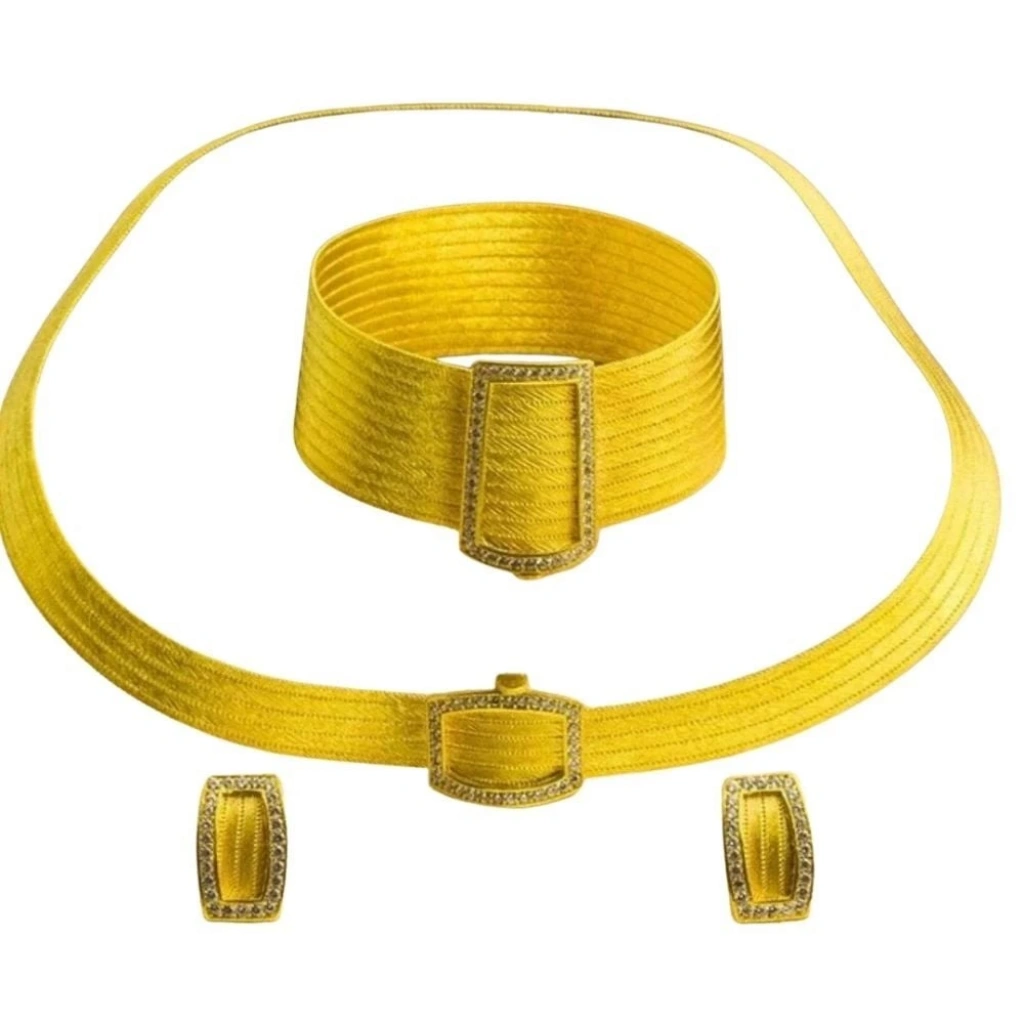 14 Ayar Altın 11 Sıra Trabzon Hasır Set Takımı 77,00 Gram: Evla Kuyumculuk, göz alıcı tasarımıyla dikkat çeken14 Ayar Altın 11 Sıra Trabzon Hasır Set Takımı ile zarafeti ve kaliteyi bir araya getiriyor. Bu özel takım, yüksek kaliteli 14 ayar altın kullanılarak özenle üretilmiştir. Takımın en dikkat çekici özelliği,11 sıra Trabzon hasırı deseniyle süslenmiştir altın zincirlerdir. Trabzon hasırı, özel bir örgü tekniği kullanılarak el işçiliğiyle oluşturulan bir desendir. Bu desen, takıya benzersiz bir dokunuş ve estetik katmaktadır. Her bir parça,ustalar tarafından özenle işlenmiş ve detaylandırılmıştır, böylece takımın göz kamaştırıcı güzelliği ortaya çıkar.