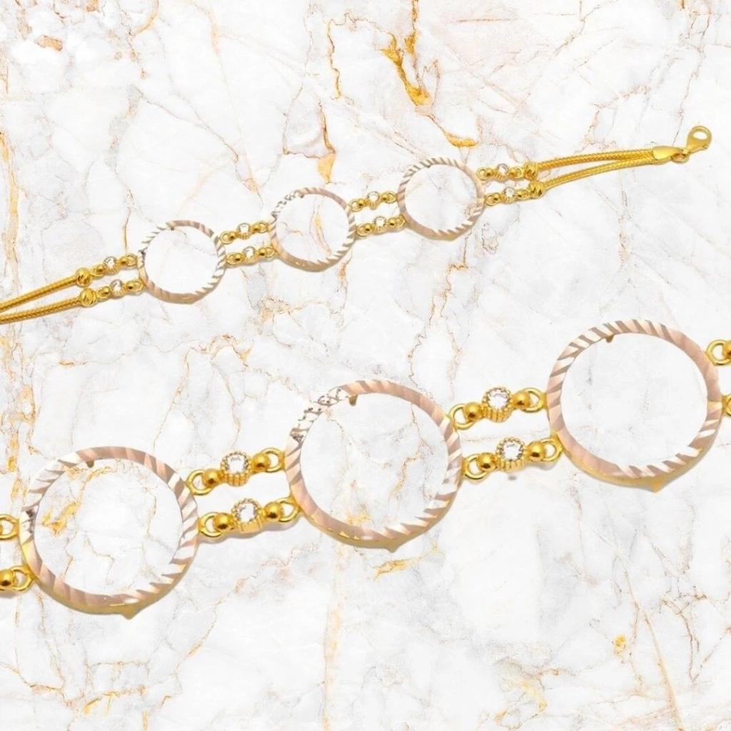 14 Ayar Altın 3 Çeyrekli Bileklik 8,46 Gram. Evla Kuyumculuk'un özel tasarımı olan 14 Ayar Altın 3 Çeyrekli Bileklik, göz alıcı ve zarif bir takı parçasıdır. Bu bileklik, yüksek kaliteli 14 ayar altından üretilmiş olup, özgün tasarımıyla dikkat çeker. Bilekliğin ana özelliği, 8,46 gram ağırlığındaki üç adet altın çeyrek dahilidir. Altın çeyrekler, bilekliğe değerli bir detay katar ve çekiciliğini vurgular. Bu detaylar, bilekliğin özgün ve dikkat çekici bir parçasıdır.