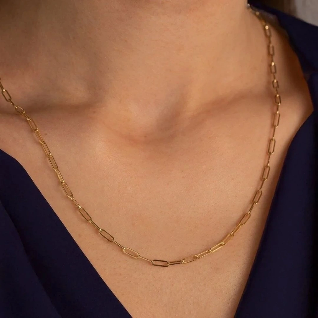 Bu zarif zincir, 14 ayar altının doğal parlaklığını ve dayanıklılığını taşır. Altının yüksek kalitesi ve göz alıcı ışıltısı, zinciri benzersiz kılar ve tarzınızı tamamlar. Hem günlük kullanımda hem de özel günlerde mükemmel bir aksesuar olarak tercih edebilirsiniz.