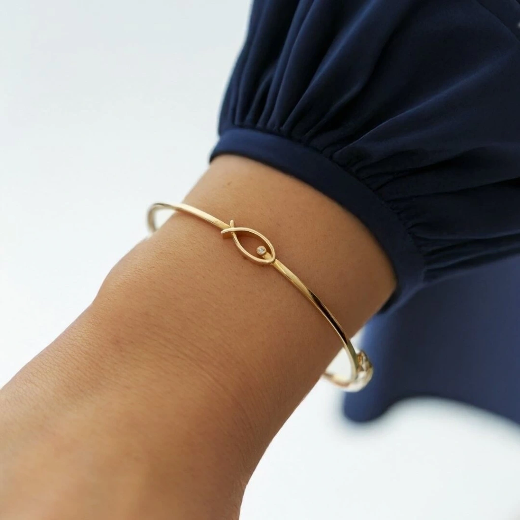 14 Ayar Altın Balık Kelepçe 4,25 Gram: Evla Kuyumculuk olarak, özgün ve etkileyici bir seçenek sunuyoruz: 14 Ayar Altın Balık Kelepçe! Bu özel ve şık tasarım, tarzınıza değer katmak için mükemmel bir tercih olacaktır. Bu benzersiz kelepçe, 14 ayar altın kullanılarak üretilmiştir ve balık figürünün zarif bir yorumunu sunmaktadır. Altının parlaklığı ve balığın incelikli detayları, bu tasarımı göz alıcı ve özgün kılmaktadır.