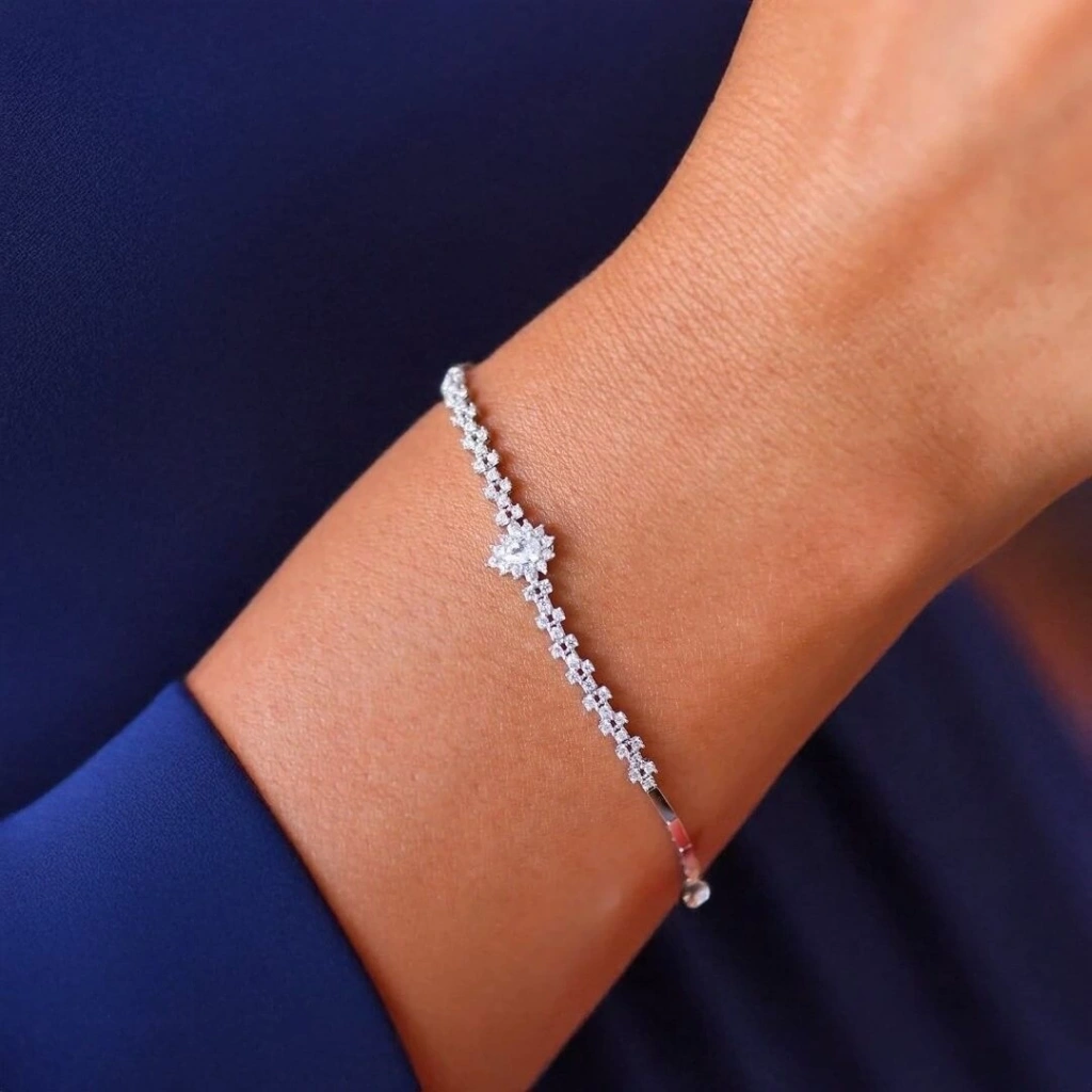 Bileklik, 19 cm uzunluğundadır ve damla motifli zincir şeklindedir.