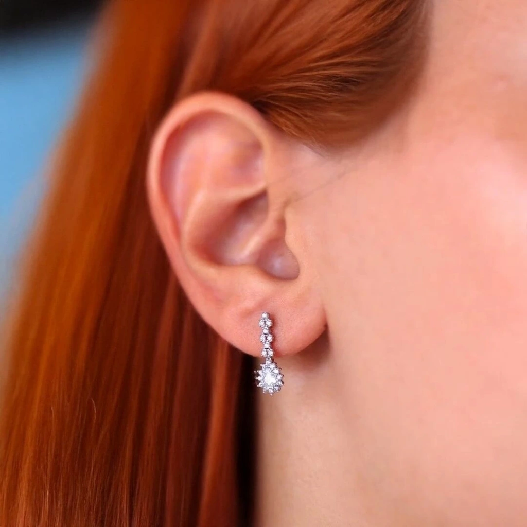 14 Ayar Altın Beyaz Damla Set Takımı 14,35 Gram;