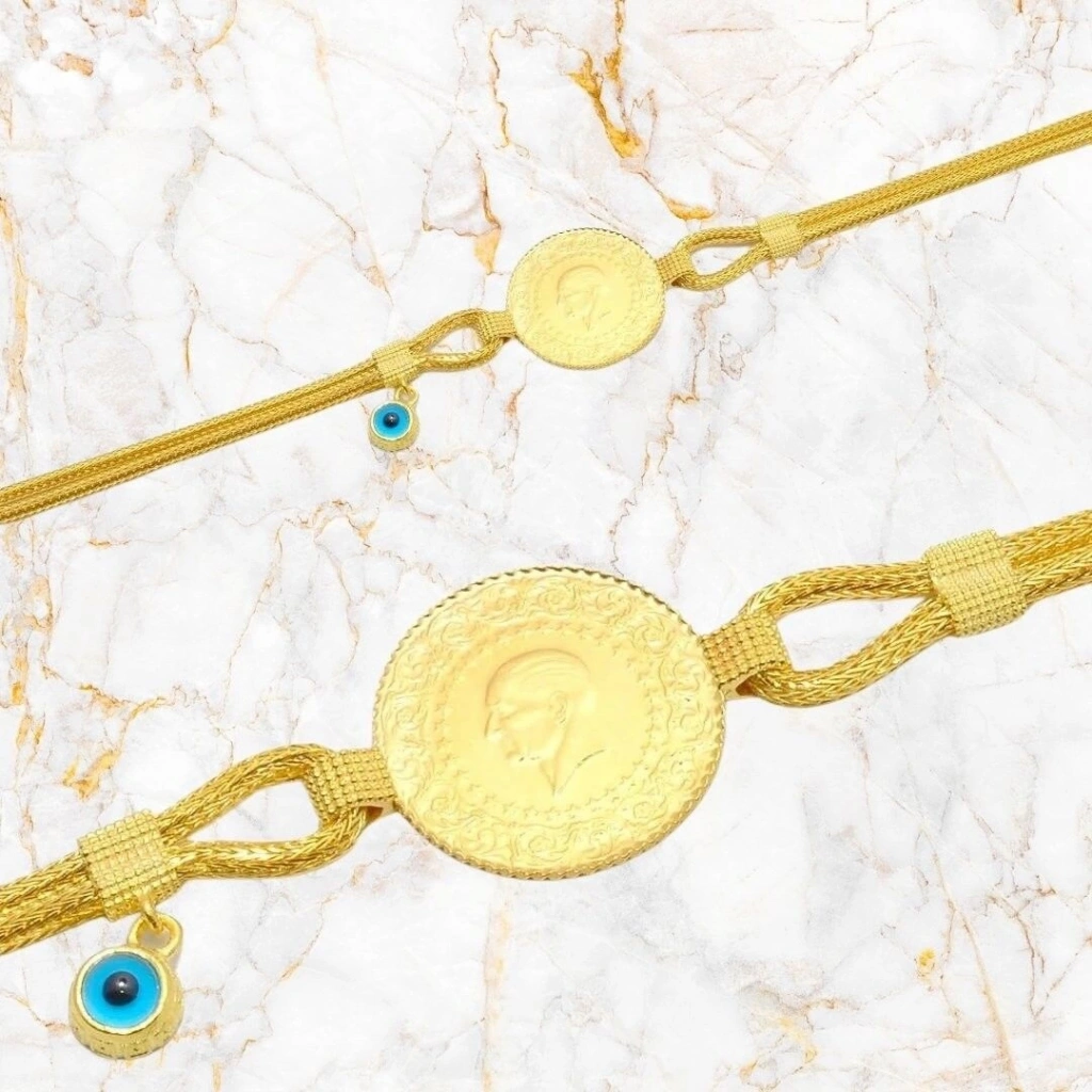 Evla Kuyumculuk'un özel tasarımı olan 14 Ayar Altın Çeyrekli Bileklik, zarif ve değerli bir takı parçasıdır. Bu bileklik, yüksek kaliteli 14 ayar altından üretilmiştir . Şıklığı ve zarafeti bir arada sunar. Bilekliğin ana özelliği, 6,82 gram ağırlığındaki altın çeyrek ve çeyrek dahildir. Altın çeyrek, bilekliğe benzersiz bir değer ve anlam katar. Ayrıca, bileklikte yer alan çeyrek, bilekliğin çekiciliğini ve zarafetini vurgular.