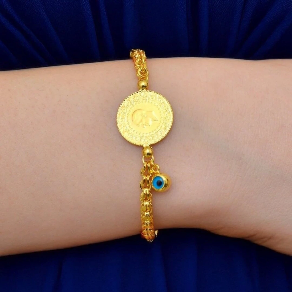 14 Ayar Altın Çeyrekli Bileklik 6,58 gram çeyrek dahil.