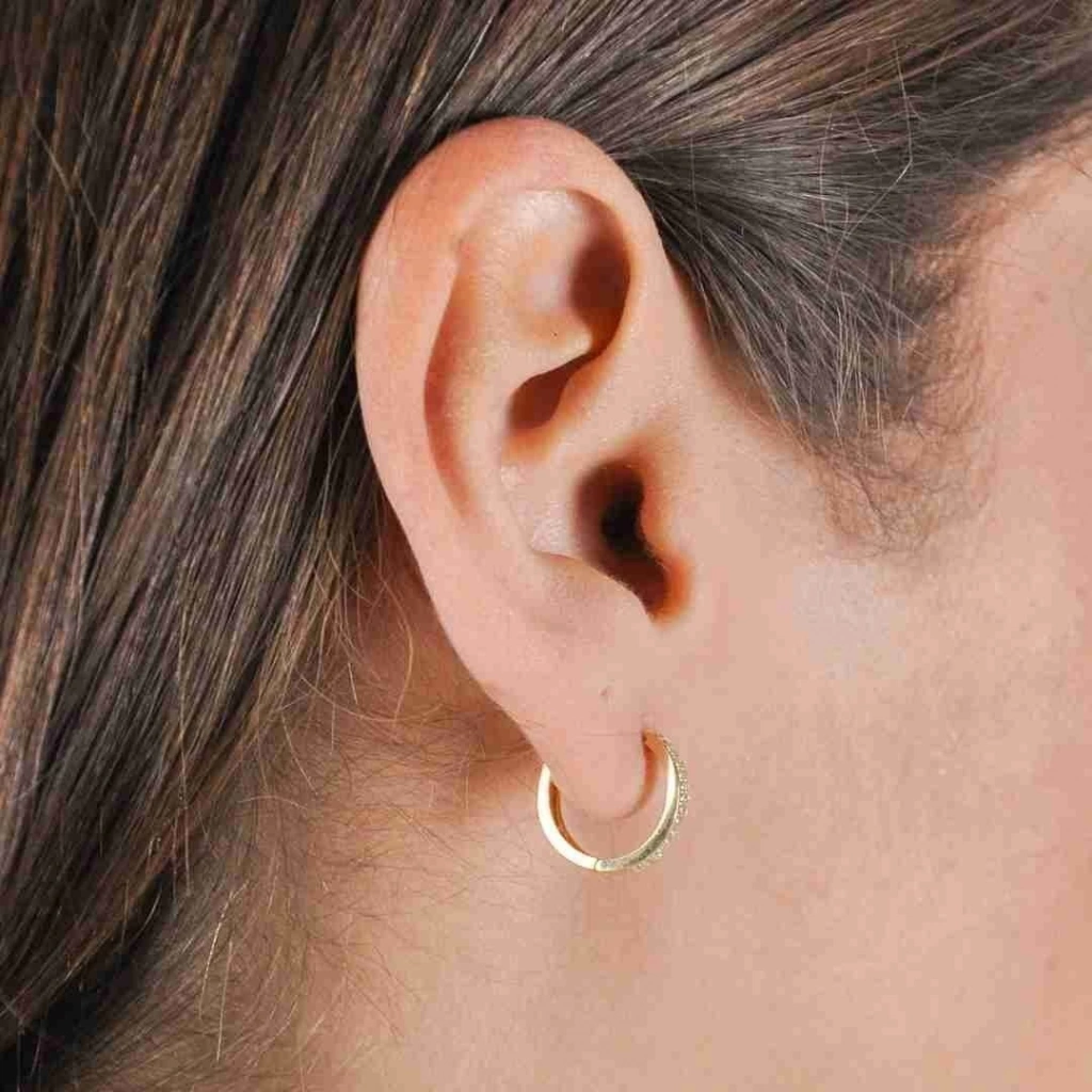 14 Ayar Altın Çift Sıra Taşlı Halka Küpe