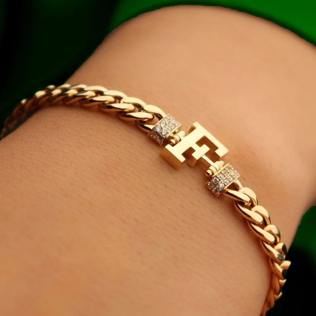 Her harf, kaliteli 14 ayar altın işçiliğiyle özenle işlenmiş ve bileğinizde zarif bir şekilde parlıyor. Modern ve minimalist tasarımı sayesinde her tarzda kıyafetle mükemmel uyum sağlar.
