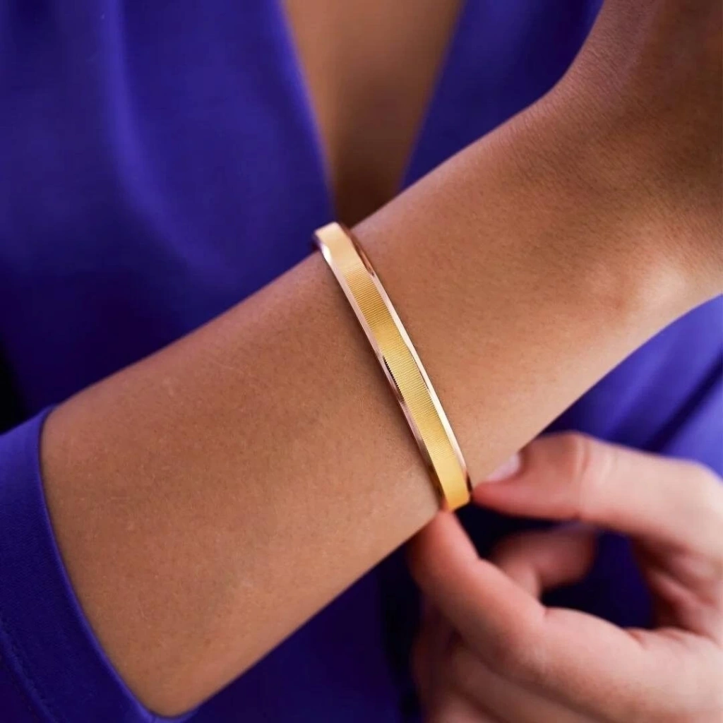 14 Ayar Altın İnce Bilezik 6,73 Gram : Evla Kuyumculuk'un 14 Ayar Altın İnce Bileziği, zarif ve şık bir görünüm sunan özel bir mücevherdir. Bu bilezik, yüksek kaliteli 14 ayar altından üretilmiş ve zarafetiyle öne çıkar. Bilezik, 14 ayar altın kullanılarak özenle üretilmiştir. 14 ayar altın, altının saflık oranını ifade eden bir derece olan 14 ayarı kullanır. Bu bilezikte kullanılan altın, parlak bir görünüm sunar ve dayanıklı bir yapıya sahiptir. Kaliteli işçilikle hazırlanmıştır.