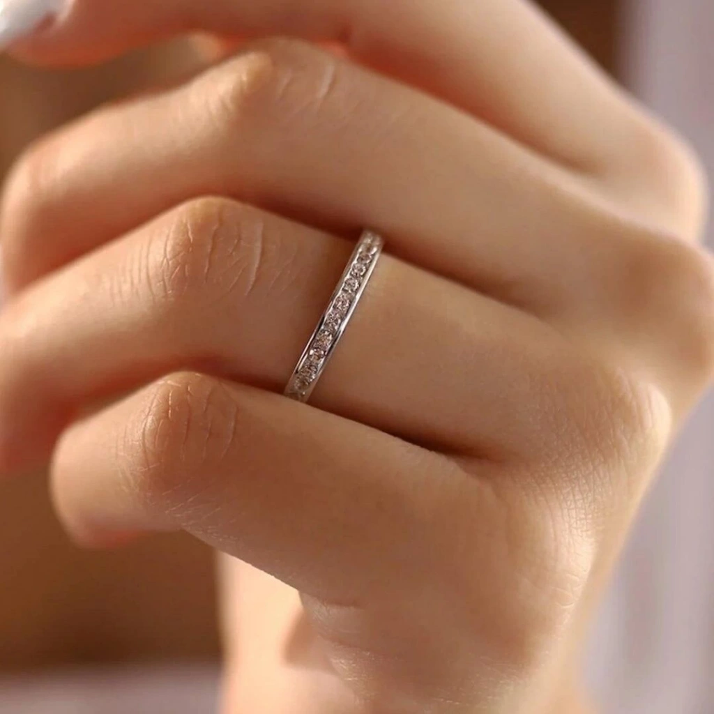 14 Ayar Beyaz Altın Sıra Taşlı Baget Tamtur Yüzük