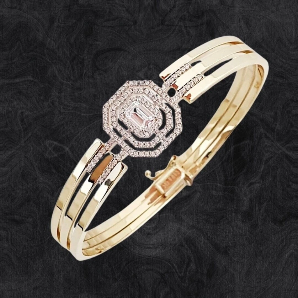 Şık ve modern bir tasarıma sahiptir. 14 ayar altın kullanılarak üretilen kelepçe. Bu da onu daha dayanıklı ve parlak bir seçenek haline getirir.