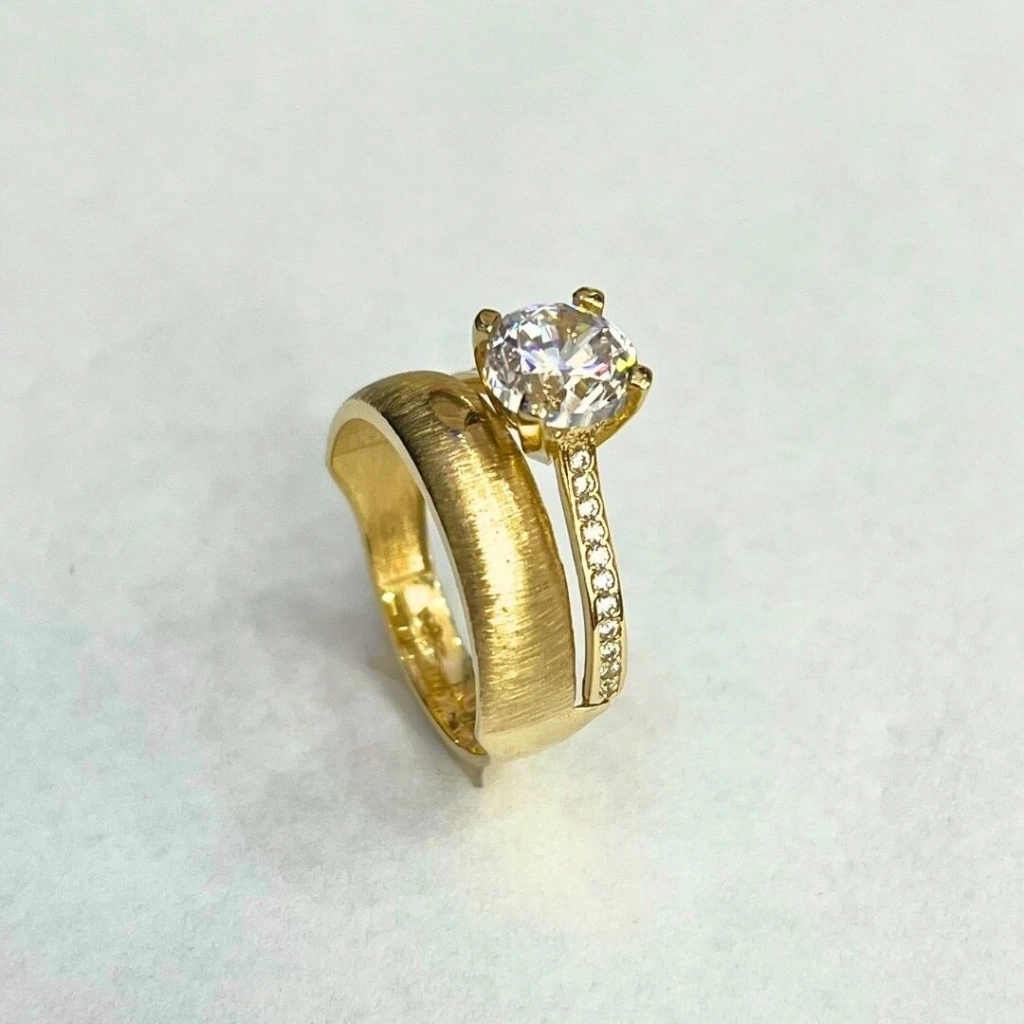 Bu yüzük, kaliteli 14 ayar altından üretilmiş olup, klasik bir tektaş detayına sahiptir.