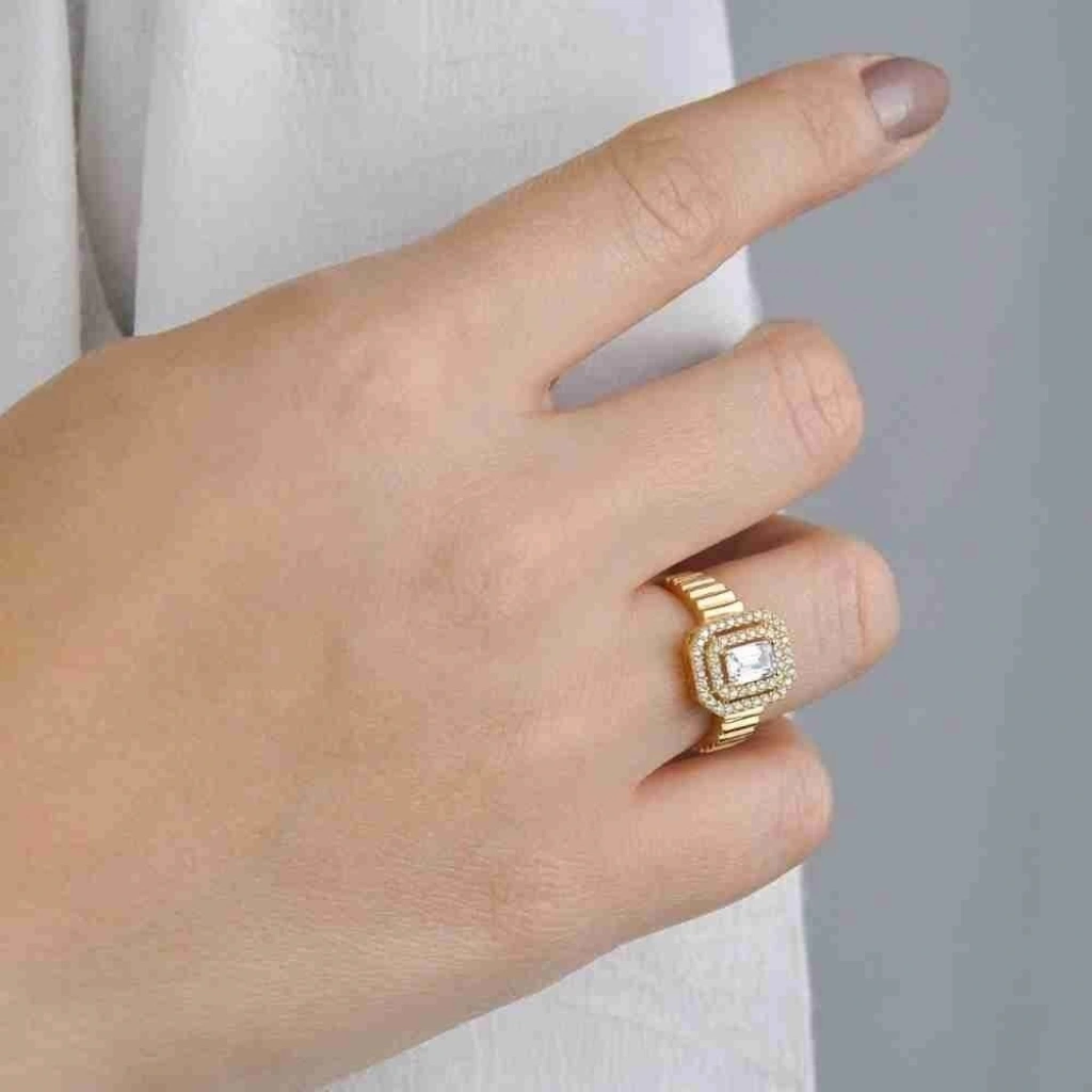 Evla Kuyumculuk tarafından özenle üretilen 14 ayar altın merdiven baget yüzük, şık ve modern bir görünüme sahip. Merdiven şeklindeki tasarımı ile dikkat çeken yüzük, hem zarif hem de modern bir görünüm sunuyor. Yüzük, 14 ayar altından üretilmiştir ve 3,16 gram ağırlığındadır.