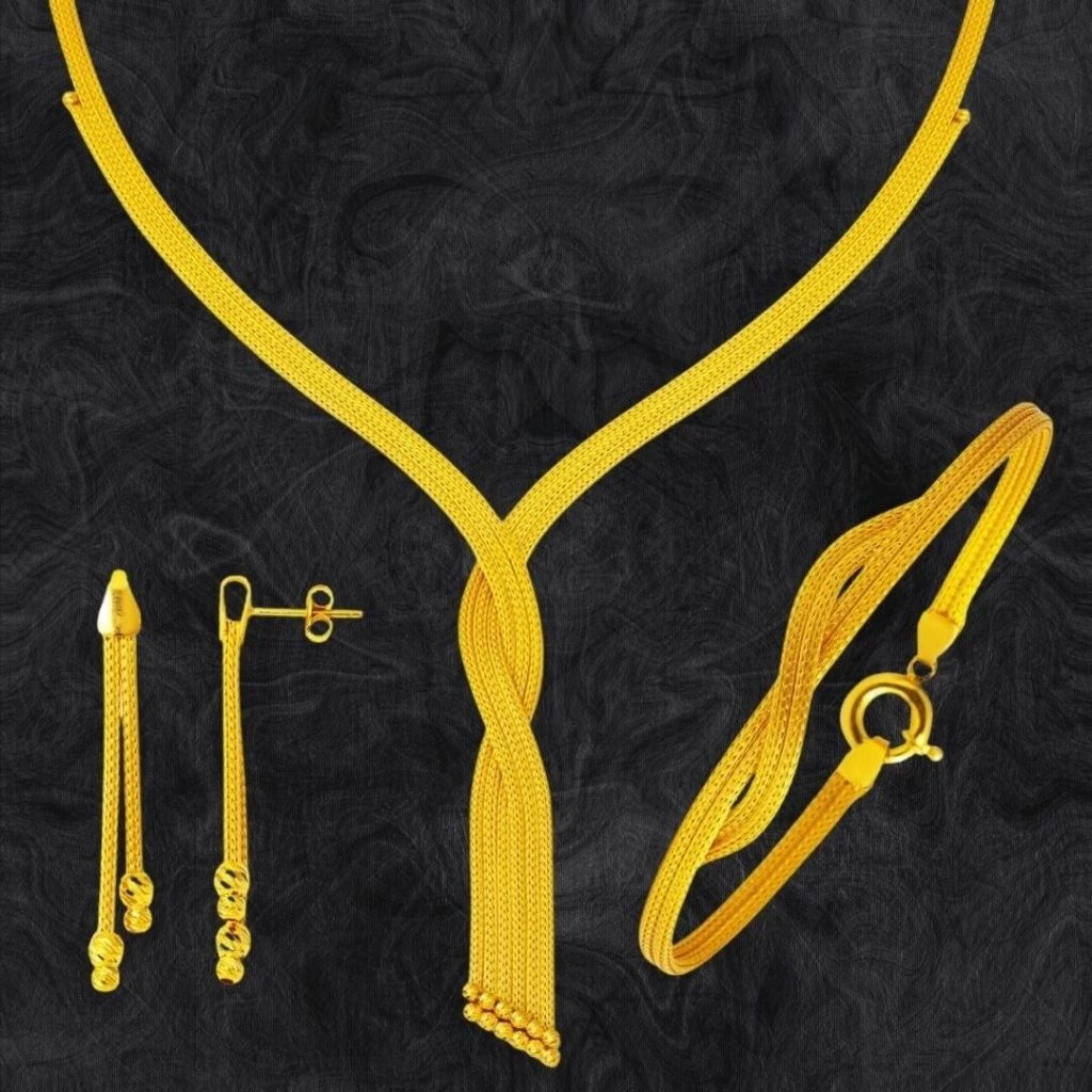 Evla Kuyumculuk’un 14 Ayar Altın Dolama Mesh Örgü Set Takımı 28,00 Gram modeli, modern ve zarif bir tasarıma sahip, her yaştan kadına hitap eden bir aksesuardır. Set takımı, mesh deseninin modern görünümünü altınla buluşturmaktadır.