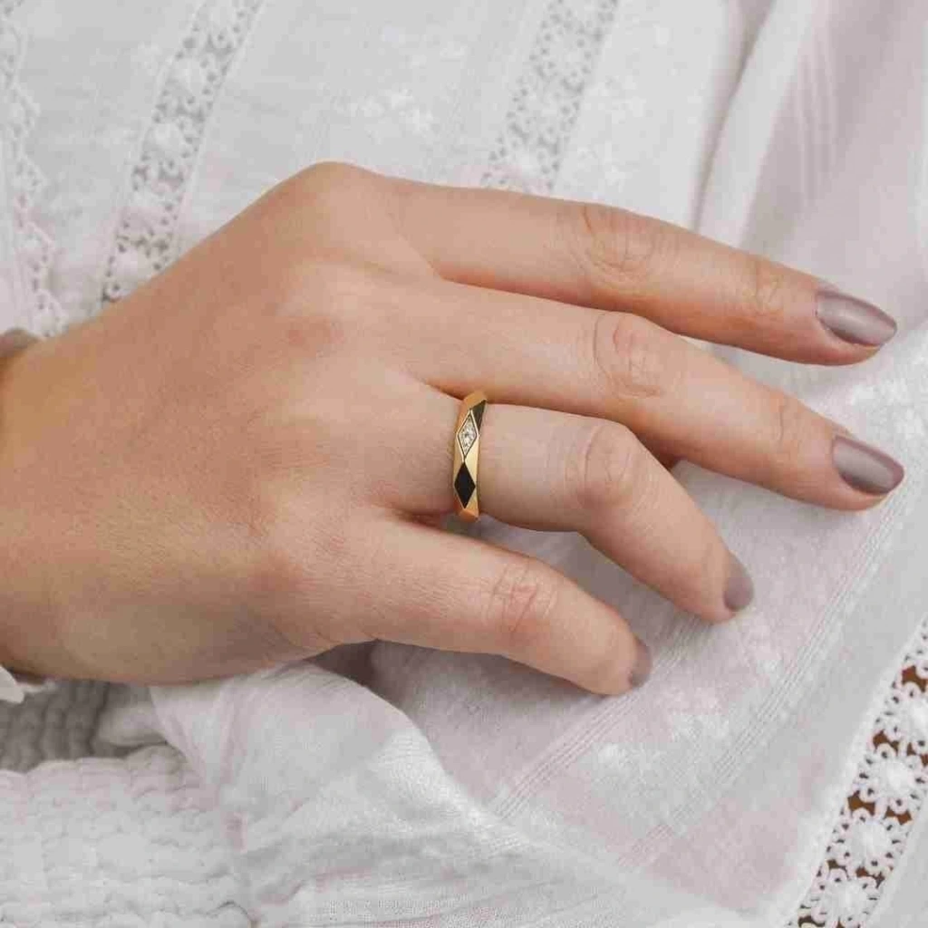 Tasarım: Piramit şeklindeki detayıyla dikkat çeken bu yüzük, modern ve şık bir görünüm sunar. Piramit detayı, yüzüğe benzersiz bir dokunuş katar ve tarzınızı vurgular.