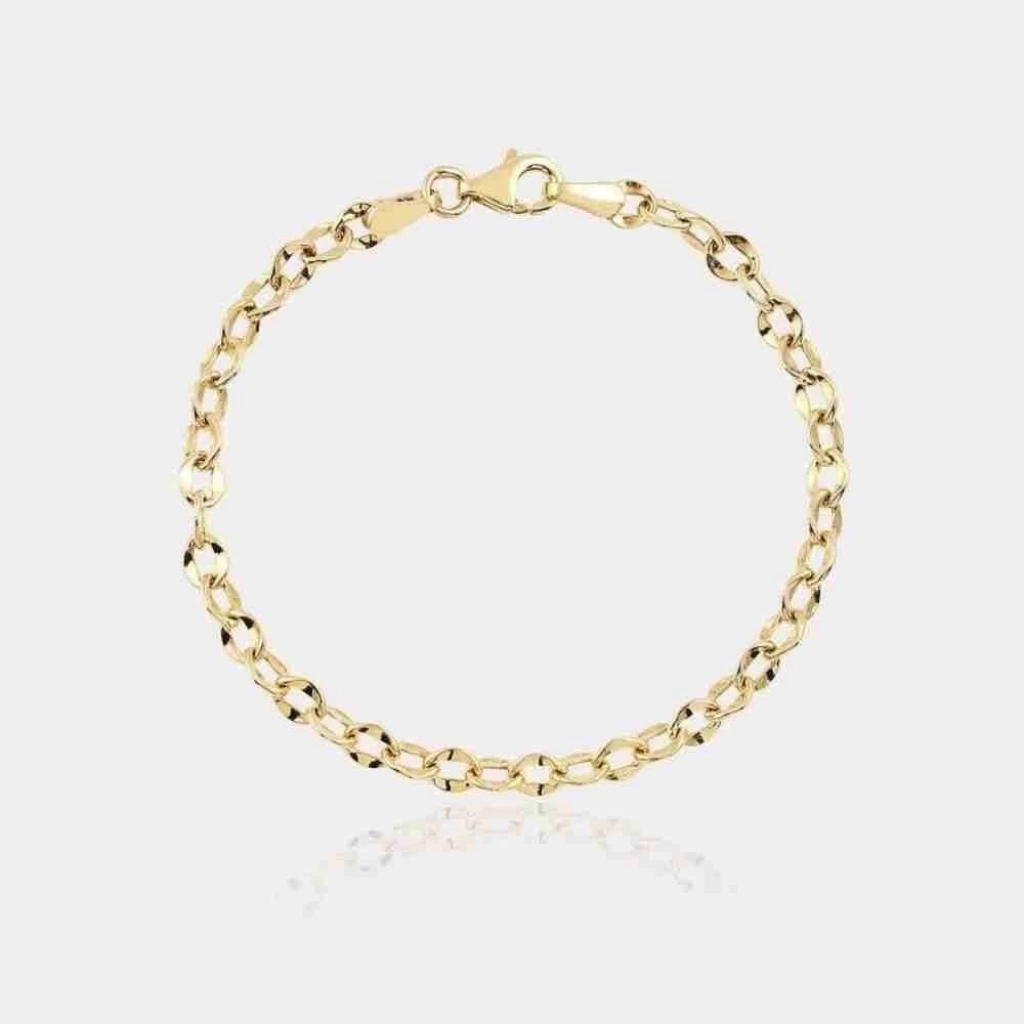 Evla Kuyumculuk’un bu şık bilekliği, çocuklarınızın bileklerini süslemek için mükemmel bir seçimdir. Sade altın renginde üretilen bileklik, üzerinde herhangi bir motif veya desen bulunmamaktadır. Bileklik, 14 ayar altın kullanılarak üretilmiştir.