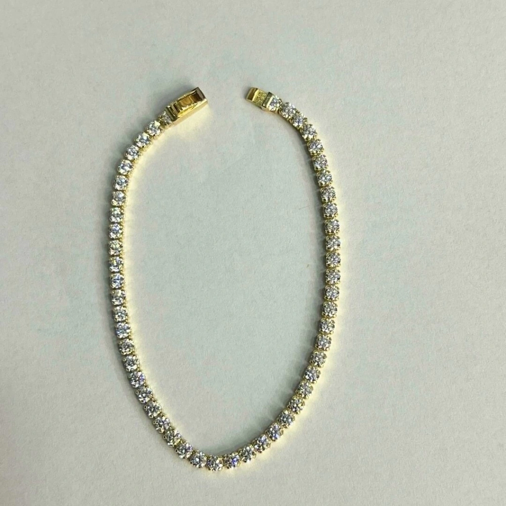 Bu 14 Ayar Altın Su Yolu Bileklik , şıklığı ve zarafeti bir arada sunan, dikkat çekici bir tasarıma sahiptir. 3 mm boyutundaki taşlarla süslenen su yolu dizaynı, bileklik boyunca parlak bir akış efekti oluşturarak her ortamda göz alıcı bir görünüm sunar.
