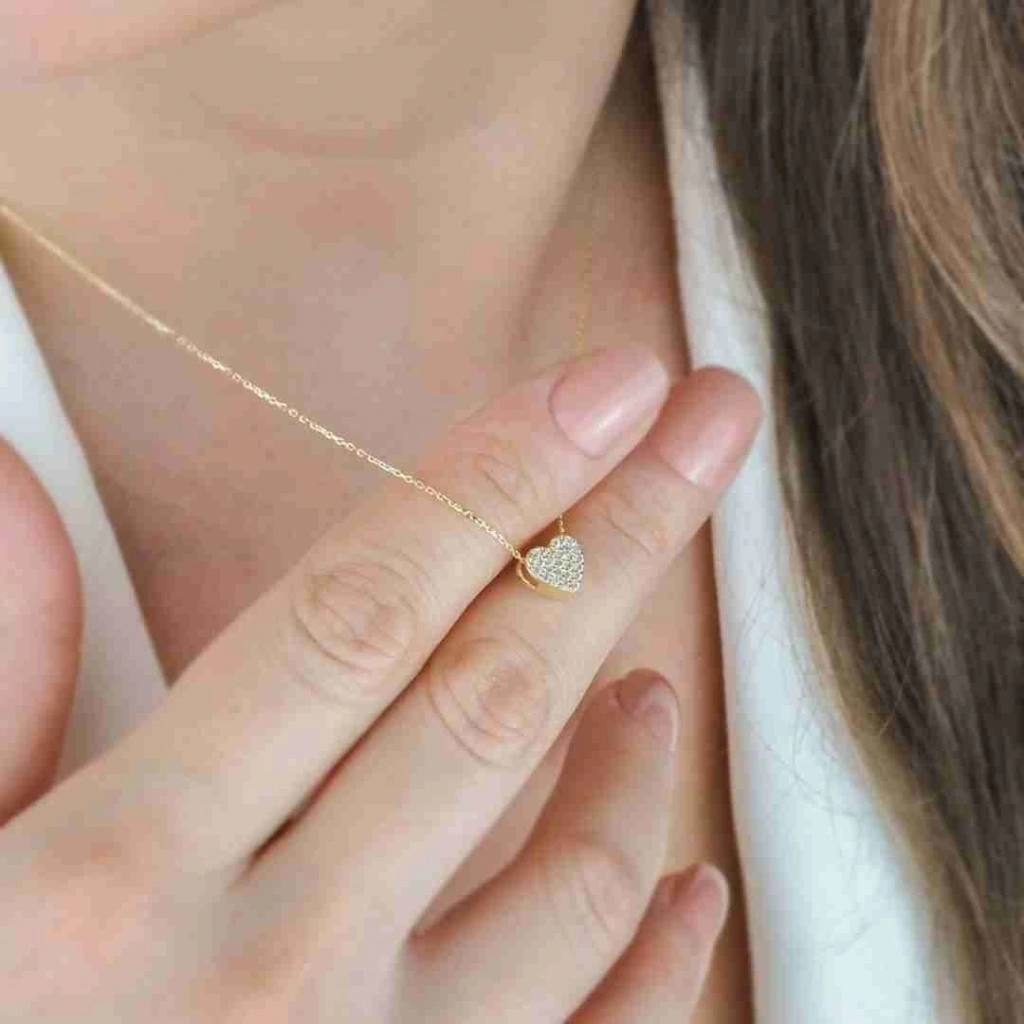 14 Ayar Altın Taşlı Kalp Kolye 1,65 Gram: Evla Kuyumculuk'un özgün ve romantik tasarımlarından biri olan14 Ayar Altın Taşlı Kalp Kolye, zarafeti ve duygusallığı bir araya getiriyor. Bu özel kolye, 1,65 gram ağırlığındaki 14 ayar altınla özenle işlenmiştir. Kolyenin kalp şeklindeki tasarımı, sevgi ve tutkuyu temsil ederken, taşlı detaylar da kolyeye ayrı bir parlaklık katmaktadır. Altının parlaklığı ise dikkat çekici bir şekilde öne çıkar. Evla Kuyumculuk, bu kolyeyi özgün bir stil ile tasarlamış ve her ayrıntısına özen göstermiştir.