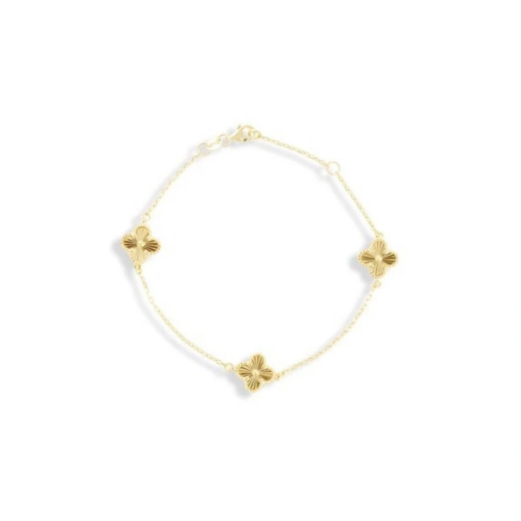Üçlü Yonca Bileklik, zarif ve anlamlı tasarımıyla şıklığınızı tamamlayan özel bir aksesuardır. 4,90 gram ağırlığında, 14 ayar sarı altın kullanılarak üretilen bu bileklik, sade ve şık bir görünüm sunar. Yonca figürleri ise, şans ve mutluluğu simgeleyerek, bileğinizde zarafeti ve anlamı birleştirir.