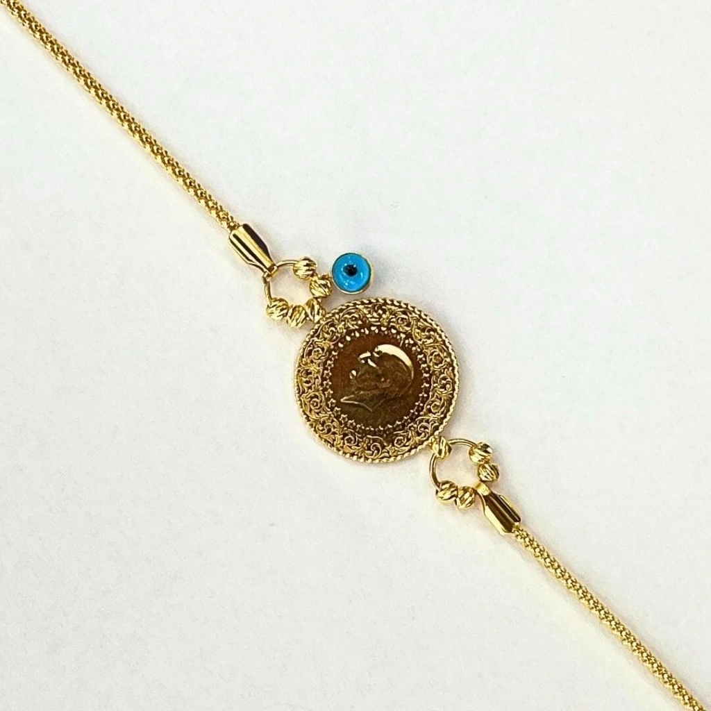 14 Ayar Çeyrekli Bileklik , klasik ve anlamlı bir takı arayanlar için ideal birseçenektir. Bu bileklik, hem geleneksel hem de modern kombinlerle uyum sağlar.14 ayar altın ve çeyrek altının birleşimi, bileziğin hem estetik hem de maddideğerini artırır. Sevdiklerinize özel günlerde hediye edilebilecek anlamlı vedeğerli bir takıdır.