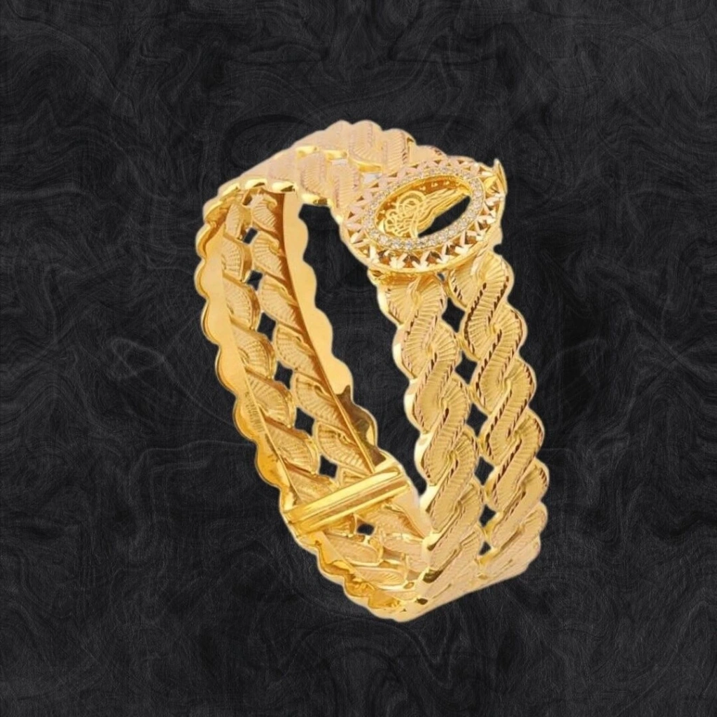 Bu 8 Ayar Altın Tuğralı Trabzon Hasır Kelepçe, EvlaKuyumculuk tarafından özenle tasarlanmıştır . Bir mücevherat ürünüdür. Yüksekkaliteli malzemeler kullanılarak yapılmış ve benzersiz tasarımıyla dikkatçekmektedir. Bu kelepçe, 8 ayar altın kullanılarak üretilmiştir ve toplamda16,65 gram ağırlığındadır. Üzerindeki tuğra detayları, Osmanlı İmparatorluğu'nunsembolik bir ifadesini taşır ve kelepçeye tarihi bir ruh katmaktadır. Aynızamanda Trabzon hasırı deseniyle süslenmiştir, bu da ona eşsiz bir karakter vegörsel zenginlik katmaktadır. Kelepçe şeklindeki tasarımı modern ve zarif birgörünüm sunar.