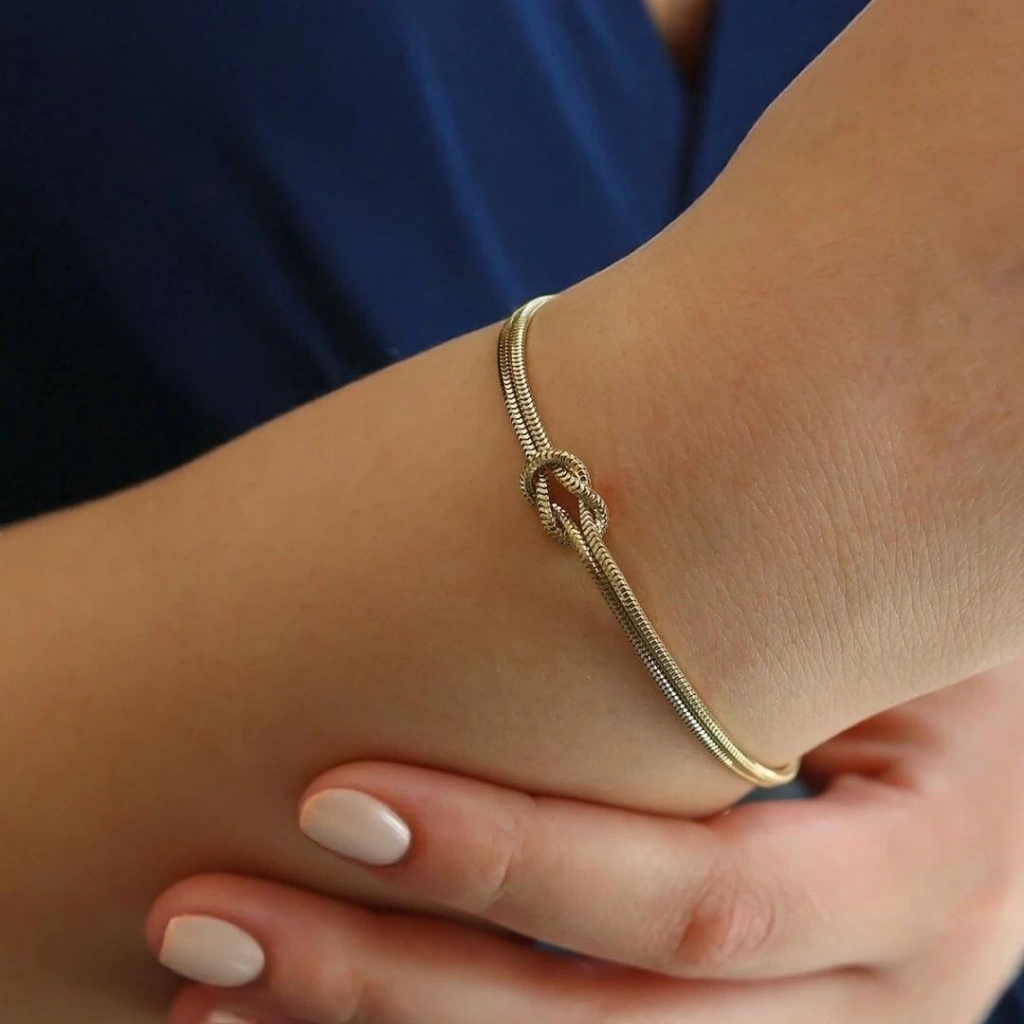 Altın Aşk Düğümü Bileklik : Sembol olarak düğüm detayı, aşk ve bağlılığı ifade eder.