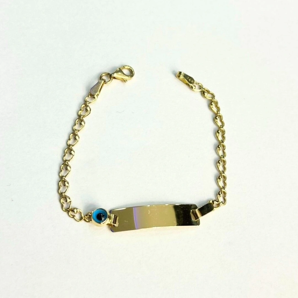 Bu 8 ayar altın nazarlı çocuk bileklik, hem şık hem de koruyucu bir tasarıma sahiptir. Nazar boncuğu motifi, bilekliğe özel bir anlam katarak çocukların şansını artırır.
