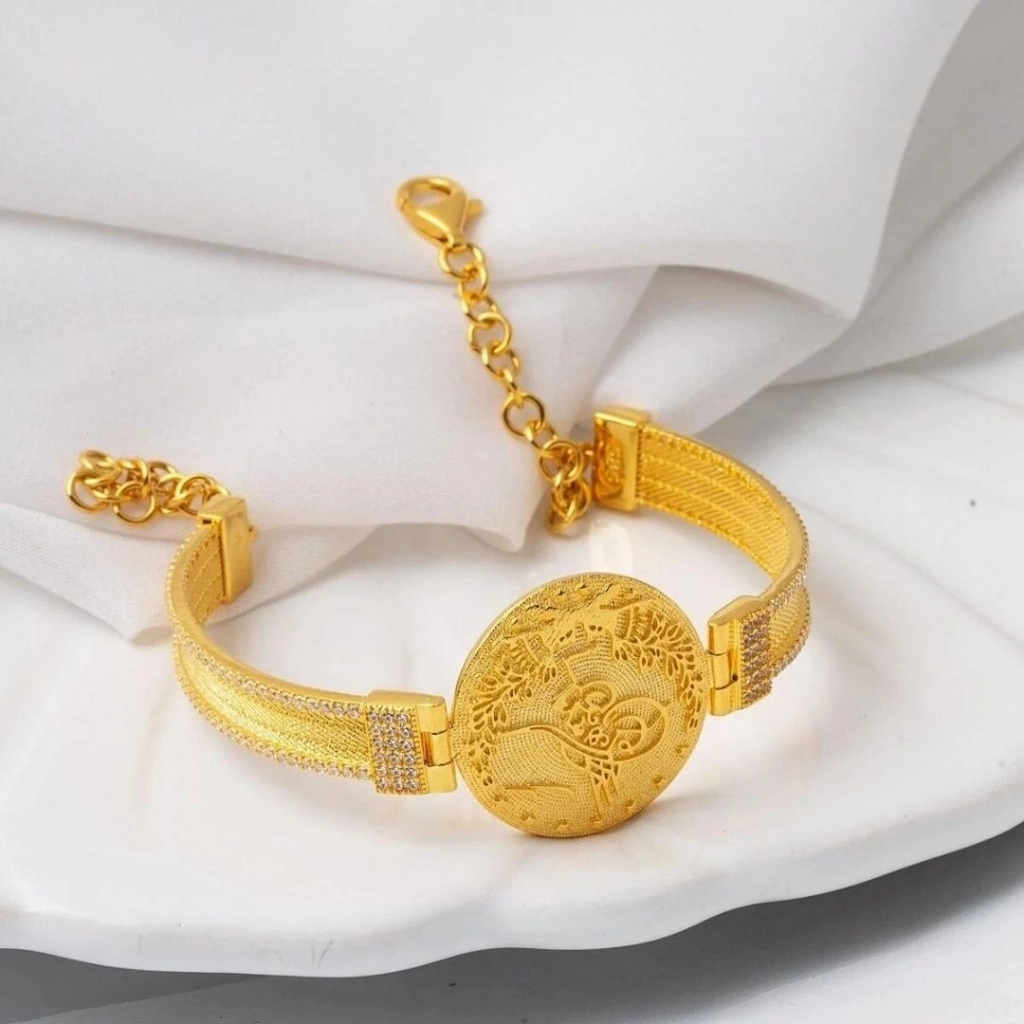 Tuğralı 14 Ayar Altın Trabzon Hasır Bileklik 16,44 Gram: Evla Kuyumculuk'un özel koleksiyonunda yer alan Tuğralı 14 Ayar Altın Trabzon Hasır Bileklik,geleneksel ve zarif bir parçadır. Bu bileklik, yüksek kaliteli 14 ayar altın kullanılarak özenle tasarlanmıştır . Ustaların elinde örülerek oluşturulmuştur. Bilekliğin Trabzon hasır deseni, Türk kültürünün önemli bir sembolü olan bu özel motifin modern bir yorumunu sunar. Altın zincirlerin ustalıkla örülmesiyle oluşturulan bu hasır deseni, bileğinizi zarif bir şekilde sarmalar ve göz alıcı bir etki yaratır. Bileklikteki özel tuğra detayı, Osmanlı İmparatorluğu'nun tarihsel bir simgesini yansıtarak bileğinize tarihi bir zarafet katar.